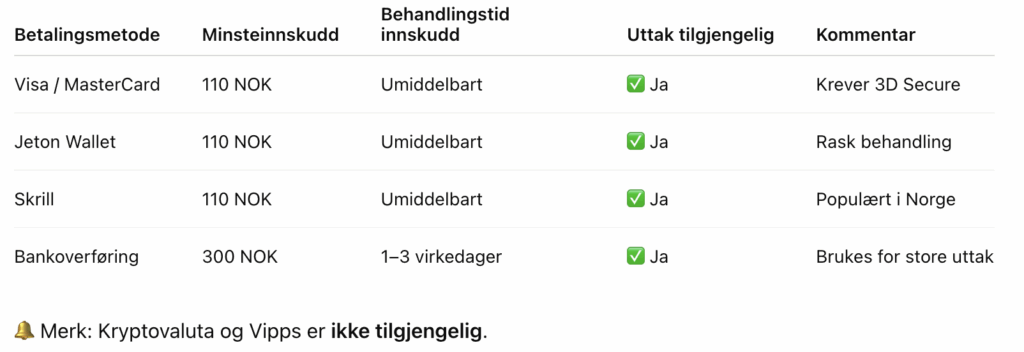 Boabet støtter flere trygge og brukervennlige betalingsmetoder. Her er en oversikt: